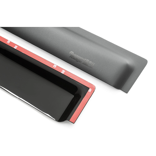 Rugged Ridge Window Visors are designed to vent your Jeep Wrangler JL Unlimited 4-Door's interior with a fresh flow of air, reducing stale air and window fogging while improving overall cabin comfort. This 4pc set of black window visors from Rugged Ridge greatly reduces wind noise while keeping the rain outside as a crisp circulation of fresh air comes in. Rugged Ridge Visors are molded from a durable 2mm thick matte finished acrylic that is scratch-resistant and installs in minutes with the included double-sided automotive grade adhesive. This Set of Window visors does both front and rear doors of the Jeep Wrangler JL Unlimited.